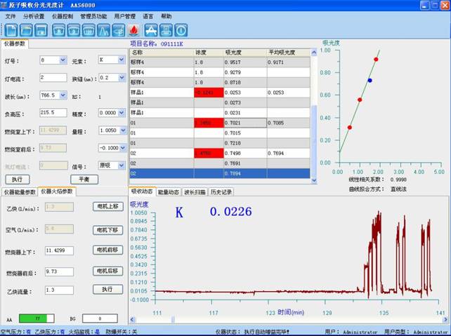 样本试验:于氧原子阅读光谱图仪光波波长766.5nm处,借助工作氛围-乙炔烈焰,以水调零,精确测量试液的吸光度,减去伴同试料的缺编成功氢氧化钠溶液的吸光度,从人物曲线下查到积极地响应的钾浓度值。
