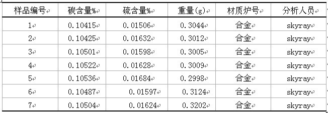 一耐热合金新国标GBW(E)010136-9901(C%:0.104,S%:0.015)用中频红外碳硫仪168型检验效果一些: