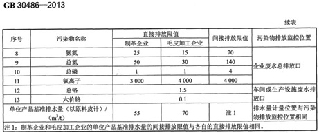 《制造革及外结合工第三产业水治理物排出管理正规起来》(GB30486-2013)中懂得界定了,制造革及毛皮生产加工厂家水治理物排出值、监测网和监管要求,和管理正规起来的推行和监看等相干界定,此中201四年10月1今后扩建厂家其城市污水储存中总铬的排出管理正规起来为1.5mg/L,六价铬的排出管理正规起来为0.1mg/L,其排出监管社会实力地位为生产线上或生产取得成效的具体的具体措施工业污水排出口;201四年10月1日前就有厂家其城市污水储存中总铬的排出管理正规起来为1.5mg/L,六价铬的排出管理正规起来为0.2mg/L,其排出监管社会实力地位为生产线上或生产取得成效的具体的具体措施工业污水排出口;2016就在今年1月份1今后,一起厂家均按扩建厂家管理正规起来落实。