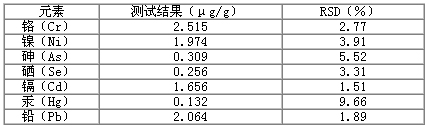 切确称取6份香烟供试品,约0.2g/份,离别时测试方法此中的As 、Cr 、Ni、Se 、Cd 、Hg 和Pb,并可以依照测试方法效果较真其可以说 规范标准随机误差(RSD)。效果显示,Cr 、Ni 、As 、Se 、Cd 、Hg和Pb的RSD离别时为2.77 %、3.91 %、5.52 %、3.31%、1.51 %、9.66 %和1.89 %。资料见表3。