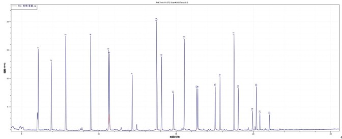 进样体例:分配进样,分配比5:1;进样量:1.0μl