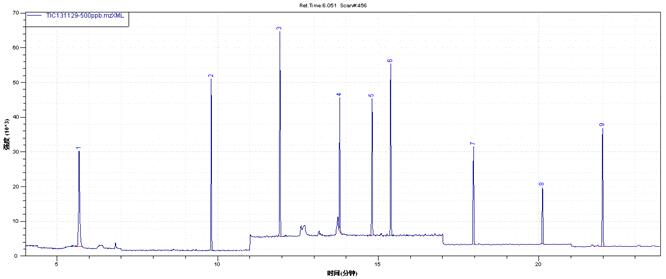进样口温度:240℃;气质接口温度:240℃;离子源温度:230℃;